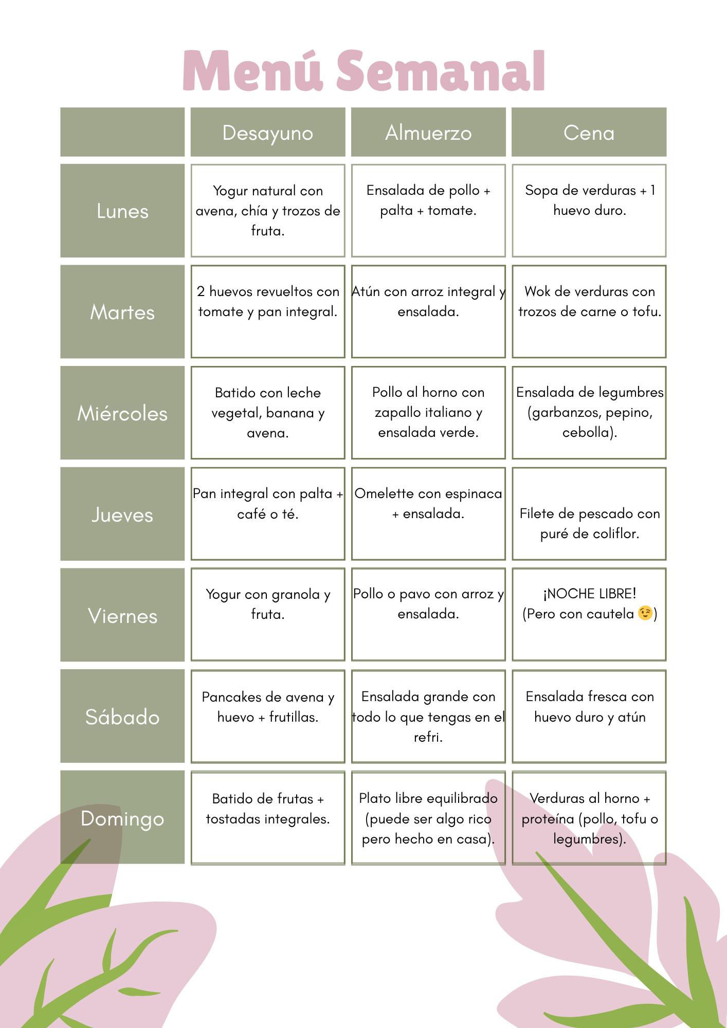 ⚠️ Importante: este plan es general y apto para la mayoría, pero si tienes alguna condición médica o restricción alimentaria, siempre consulta a tu médico o nutricionista antes de comenzar.
