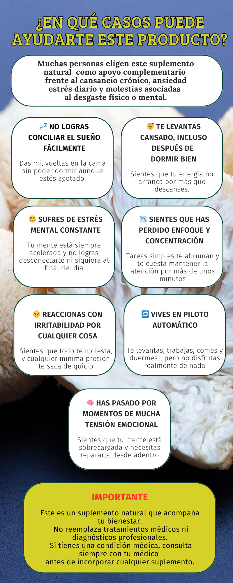 Con solo dos cápsulas al día, puedes despertar tu claridad mental, reforzar tu sistema nervioso y reconectar con esa versión de ti que avanza con seguridad, productividad y calma.